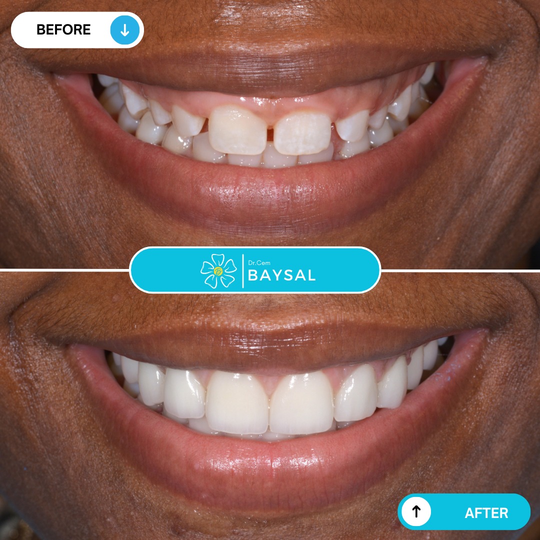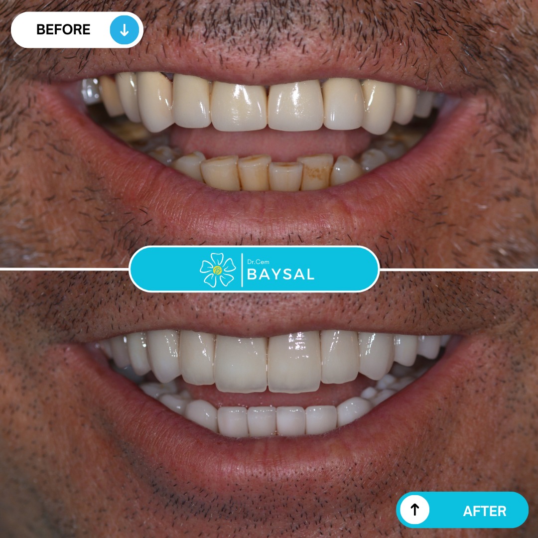 These photos showcase the before-and-after results of dental treatments by Dr Cem Baysal, highlighting the transformation of Turkish teeth. With quality and standards as our top priorities, we aim to renew your smile to a healthy and beautiful one, without incurring high costs, hidden fees, or side effects.